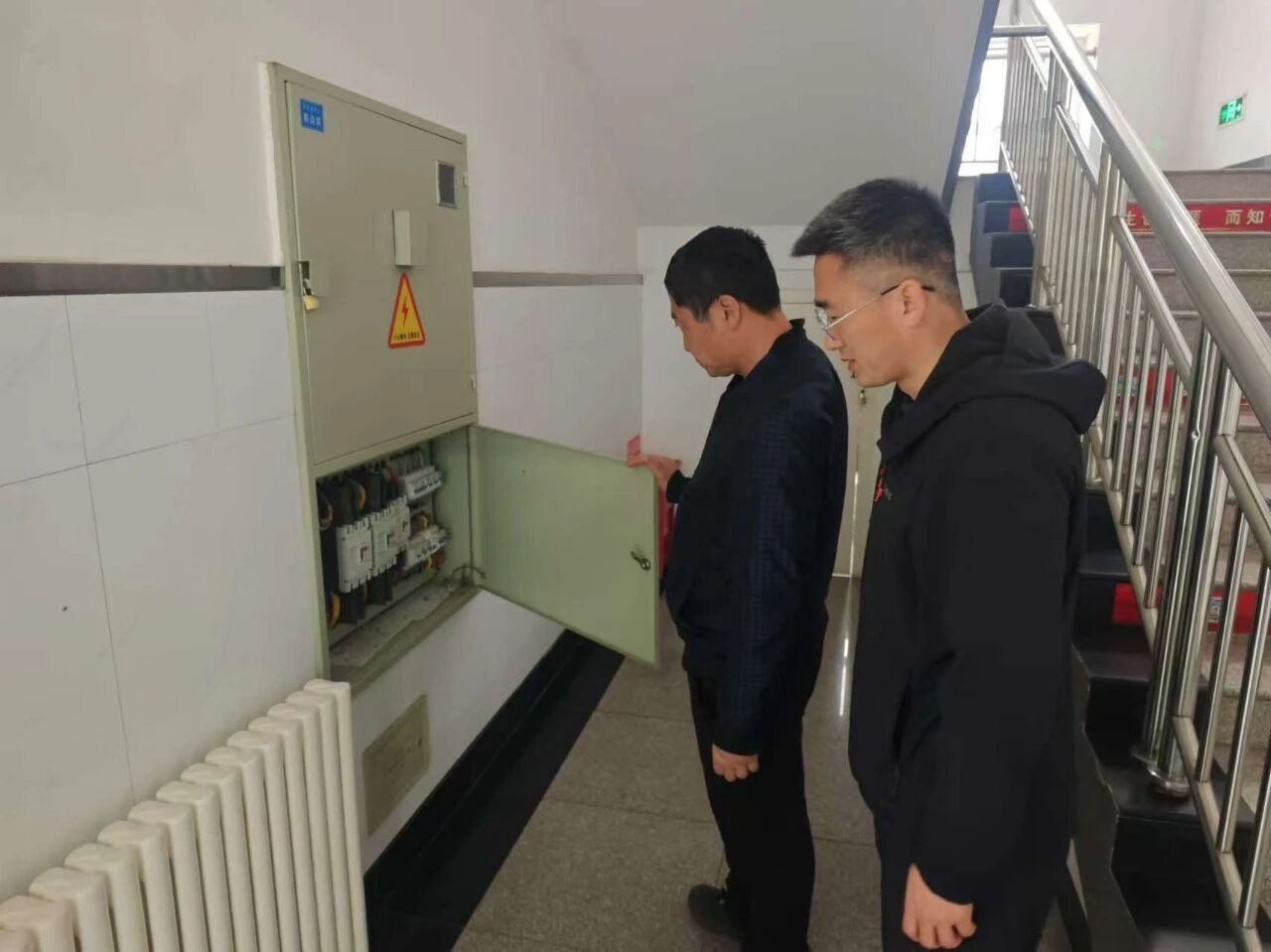 安全检查小组先后深入教学楼、实验室、配电室、门卫室、操场及围墙周边,重点排查消防安全、用电安全、设施安全、安防监控、疏散通道、校园排水等方面安全。详细检查消防器材是否完好有效、应急照明与疏散指示标志是否正常、电路线路是否老化破损、体育器械与护栏是否牢固、门禁管理与一键报警系统是否运行正常,马葫芦是否堵塞。
