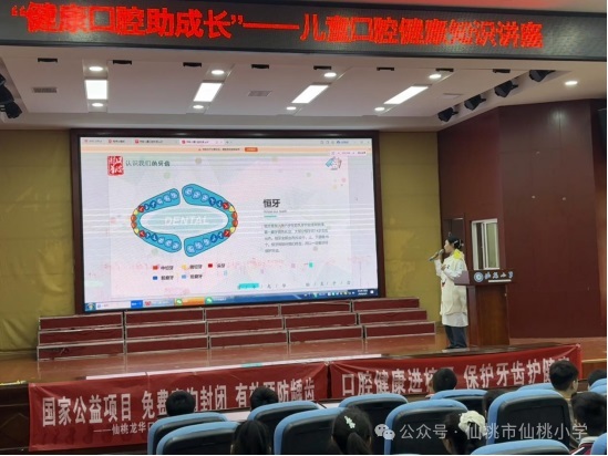 为进一步增强学生的口腔健康意识,培养良好的卫生习惯,守护孩子们灿烂的笑容与牙齿健康,4月9日下午,仙桃小学满庭春校区在学术报告厅为306、307、311班的同学们举办了“健康口腔助成长”儿童口腔健康知识讲座。
