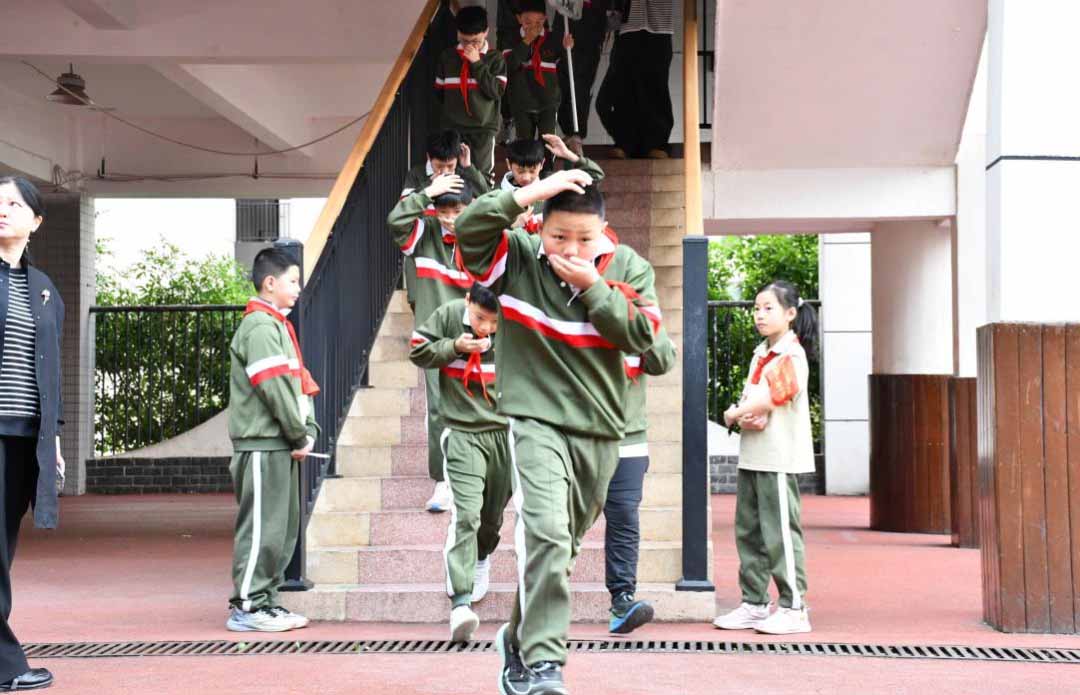 上午8点20分,紧急疏散警报声准时响起,演练正式启动。全校师生迅速进入应急状态,各班学生在班主任及任课教师的引导下,严格遵循学校预设疏散路线,低头弯腰、用湿毛巾或衣袖捂住口鼻,快速、有序、安静地撤离教室。各楼层、楼梯口、拐角处的值守教师提前到位,认真疏导人流,提醒学生保持间距、严防拥挤,全程秩序井然、规范高效。